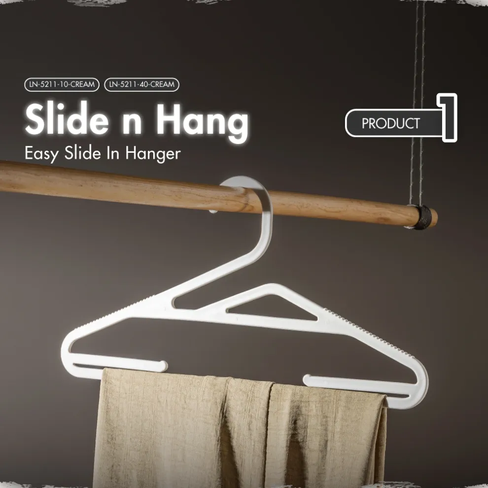 - Slide n Hang: Innovative slide-on design allows you to easily add or remove garments without stretching necklines, great for t-shirts, sweaters, and lightweight layers.
