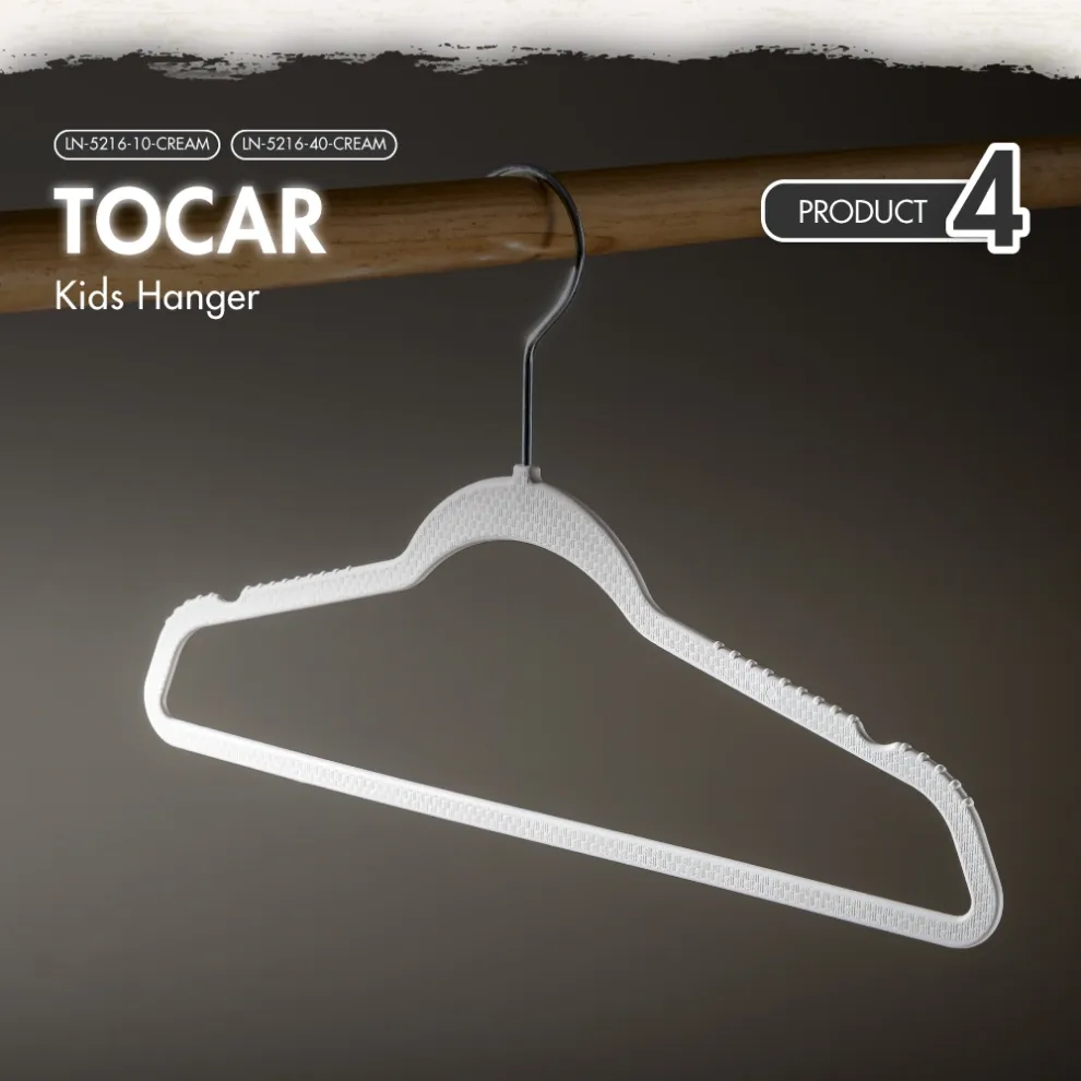 - TOCAR Kids: Specially designed for children’s clothing, these smaller hangers keep kids’ garments organized and prevent stretching or slipping, perfect for creating a tidy kids’ wardrobe.